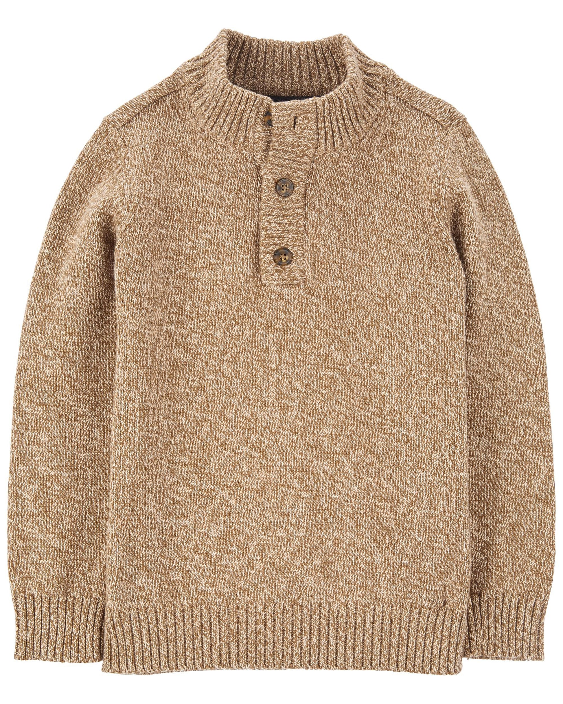 Se verá muy guapo con este suéter, completo con una tapeta de botones en la parte delantera y un acogedor ribete acanalado.