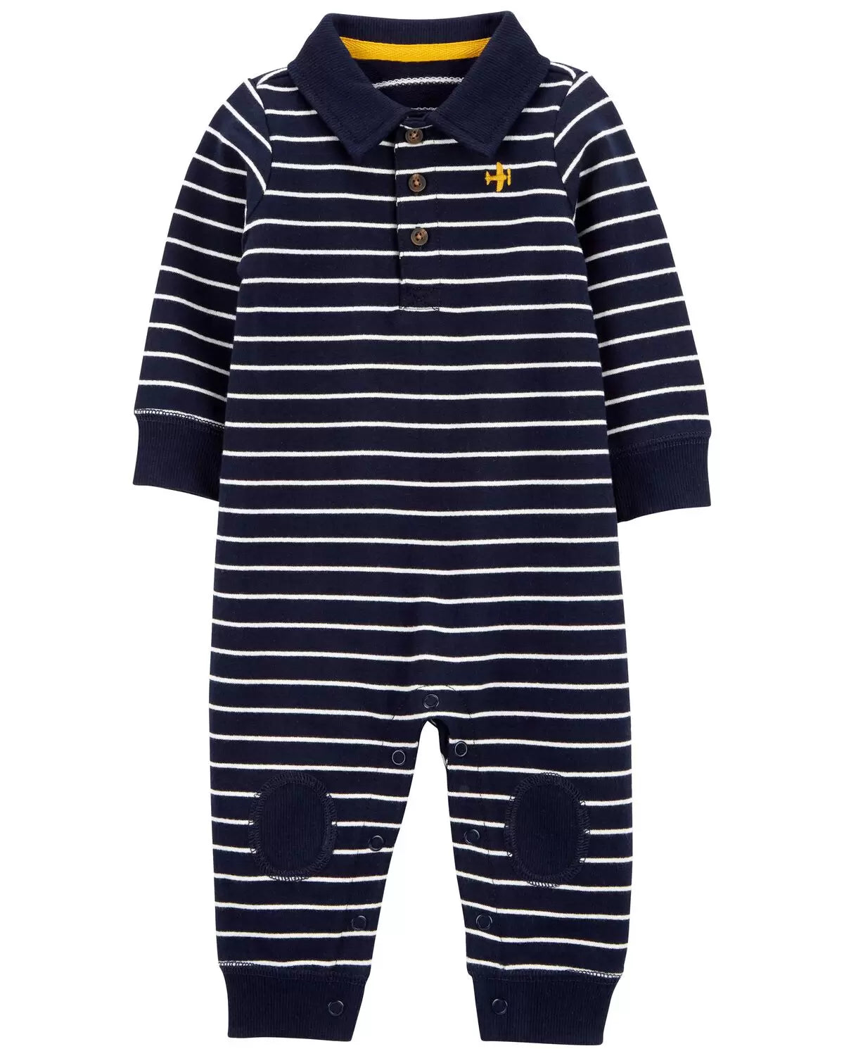 Confeccionado en algodón súper suave con rayas en toda la prenda, este mono es perfecto para el bebé.