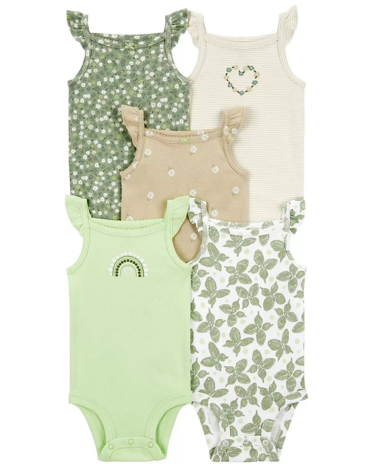 Confeccionados en algodón suave con un diseño sin mangas, estos mamelucos con aleteo son perfectos para tu colorido bebé.